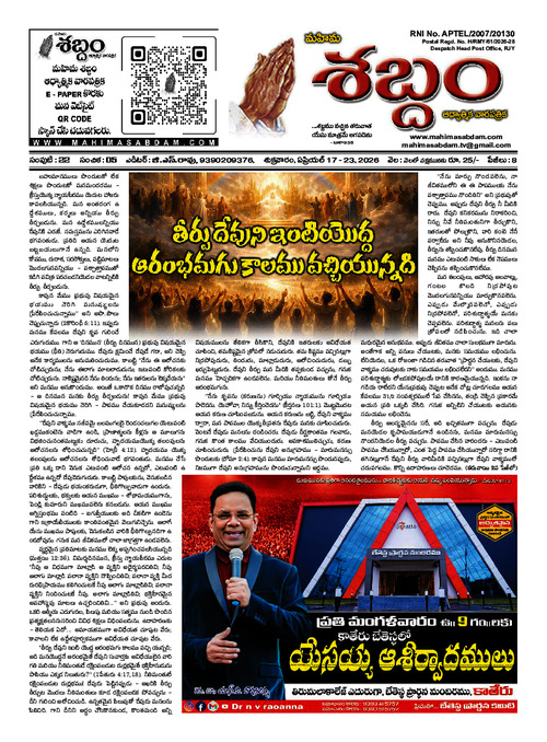 దైవస౦దేశాలు,  సైన్సు తో కూడిన వాస్తవ స౦ఘటనలు, రాష్ట్ర వ్యాప్త౦గా జరుగు క్రైస్తవ సభల సమాచార౦, చరిత్ర, ప్రప౦చ వ్యాప్త క్రైస్తవ  వార్తాసమాచారం,  అద్బుతసాక్ష్యములు,  మిషనరీల జీవిత చరిత్ర,  ఉపమానములు, ఇంకా అనేక ఆధ్యాత్మిక రచనలతో వెలువడుతున్న.
